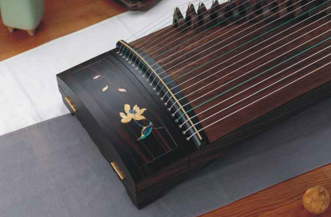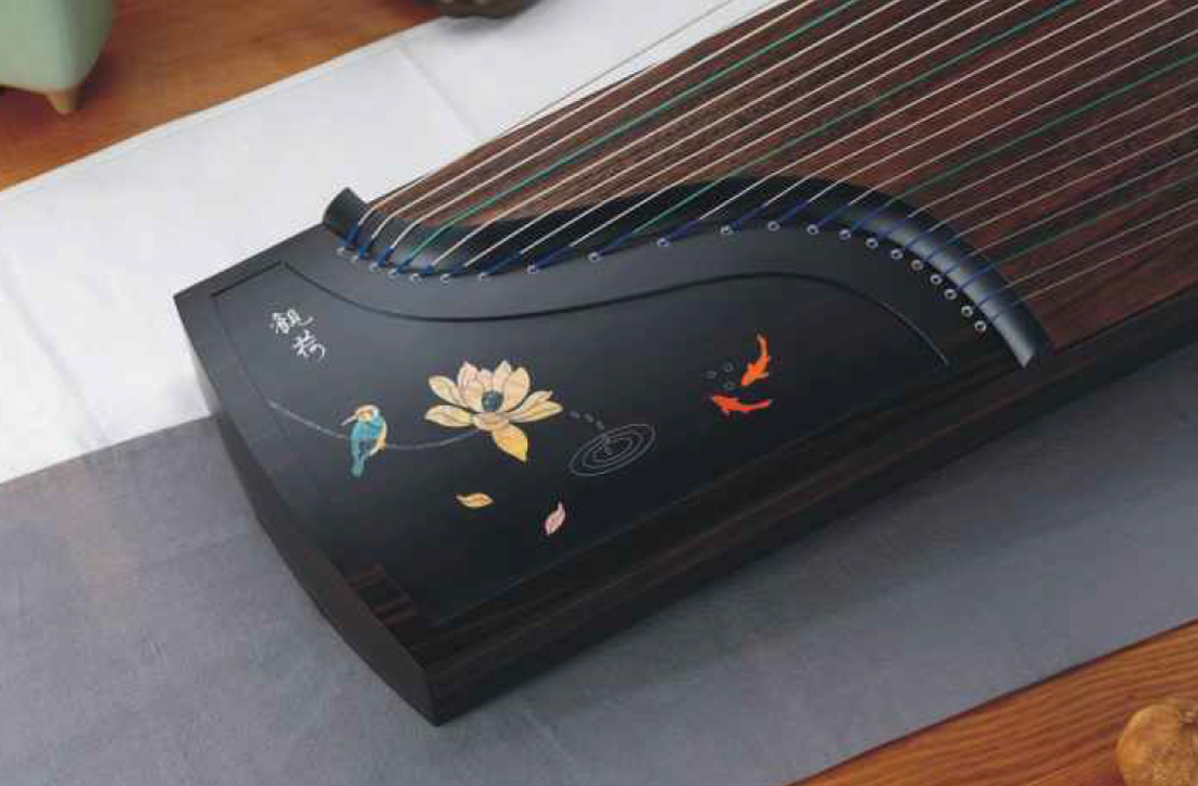 仿黑檀木非洲红木古筝名静谧,以观荷图呈现。