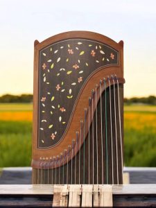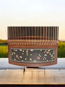 产品介绍:特式古夷苏木(巴花)21弦专业古筝艺术形象为澄岚,94R属于镶嵌类系列,是一款高品质专业古筝。澄岚取自清代方文的诗“岁久迹泯灭,此地空澄岚”,有山间水气清新之意。